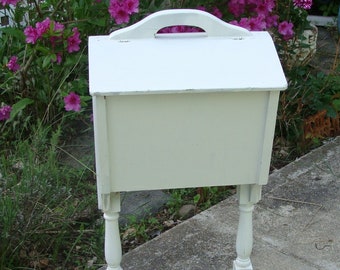 Antique Hand Painted Wooden Standing Sewing Box Chest Stand Ebay